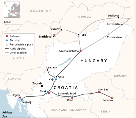 Zagrebi po punon mbi planet që mund të dyfishojnë kapacitetin e tubacionit të naftës Adria në 2 milion ton në muaj. Kjo do të ishte një rrugë shpëtimi për vendet anëtare të BE-së, Hungarinë, Sllovakinë dhe Slloveninë, si dhe Serbinë dhe Bosnjën, të cilat kanë terminale dhe rafineri që lidhen me tubacionin dhe po përpiqen të reduktojnë varësinë nga gazi rus.