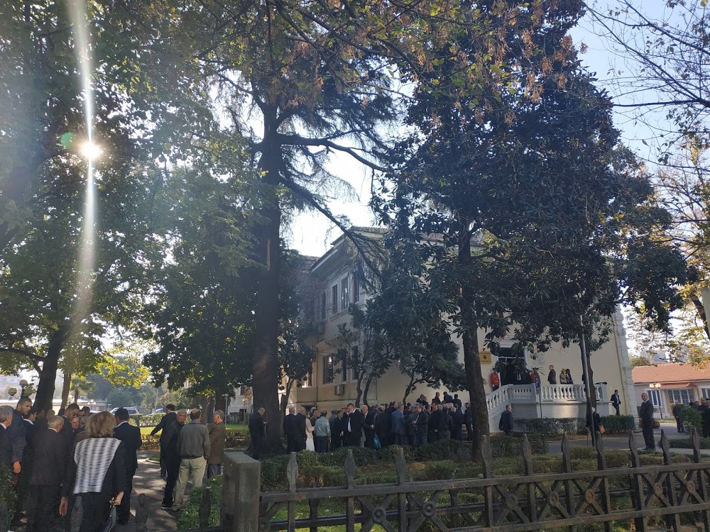 Burra me plisa të bardhë, me simbolin e shqiponjës dykrerëshe, i sjellin disi ngjyresat politike ceremonisë, ku të paktën në orën e parë të ceremonisë, e cila nisi në nëntë të mëngjesit, nuk u mësy nga figurat qendrore të politikës së ditës, të cilët i kishin lënë vizitat për ca më vonë.
