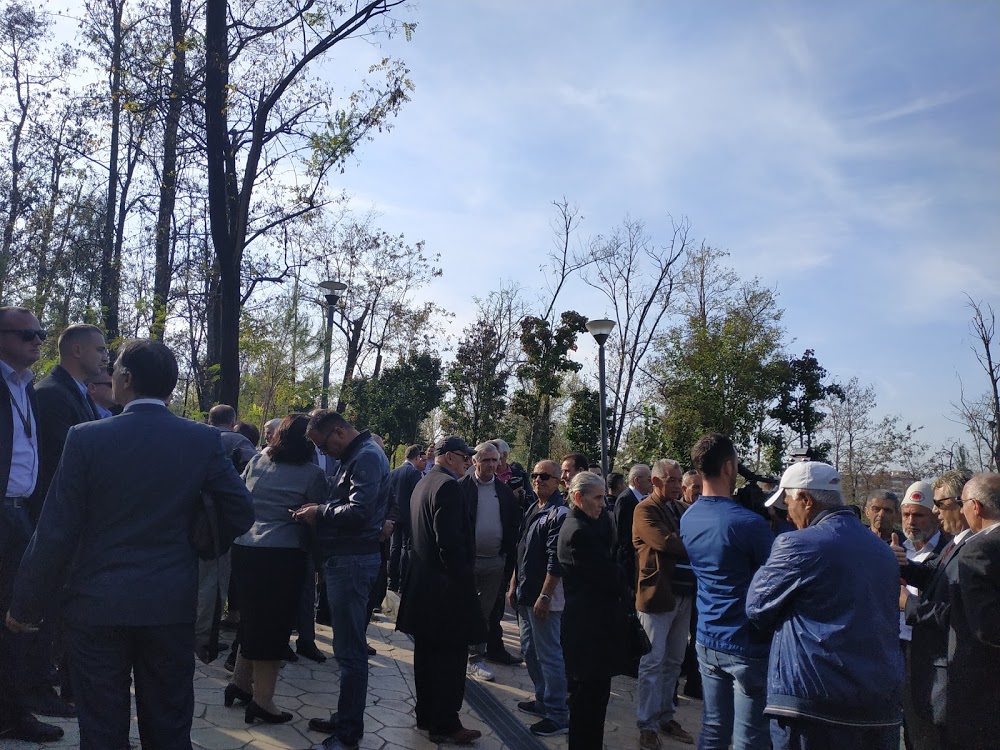 Përpara gardhit me punonjës të gardës, që kishin marrë urdhër të mos lejonin askënd tjetër që nuk e kishte emrin t’i afrohej rrethimit pranë varrezave monumentale të vëllezërve Frashëri. Kreu i Ballit Kombëtar të Kosovës thoshte se kishte bërë gjashtë orë udhë për të qenë sot në mëngjes i pranishëm në këtë ceremoni, por që iu desh të priste derisa të mbaronte protokolli zyrtar i qeverisë për të vendosur një kurorë me lule në varrin e Mid’hat Frashërit. “Tani që Balli Kombëtar po merr prapë rëndësi me kthimin e Mid’hat Frashërit, këta nuk na lënë”, “Po e varrosin ata, prindërit e të cilëve na kanë vrarë baballarët”, u nxehën disa të tjerë, “Nuk kemi ardhur si partiakë, por si qytetarë, si intelektualë, për të nderuar figurën e atij burri të madh, por s’ka gjë, le të mbarojnë ata, pastaj do të shkojmë ne”. Ndërsa debatet vazhdonin në atë pjesë të parkut të Liqenit me dhjetëra qytetarët që nuk u afruan dot ta ndiqnin më nga afër ceremoninë e rivarrimit, pak më tutje, kryeministri i vendit, Edi Rama, i cili nuk zgjodhi të ishte në Akademinë e Shkencave, por në çastet e fundit të rivarrimit, e quajti “ shërbestar të mëmëdheut sipas kokës së tij’.