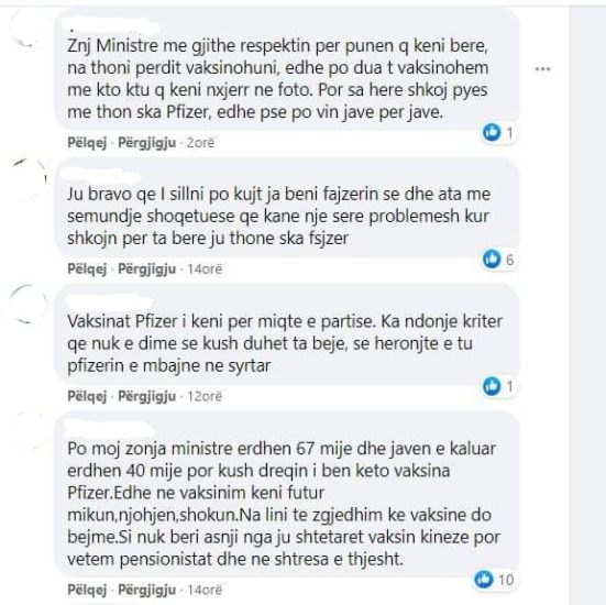 Janë të shumtë ata që i shkruajnë Ministres në faqen e saj se “ku shkojnë” vaksinat Pfizer.
