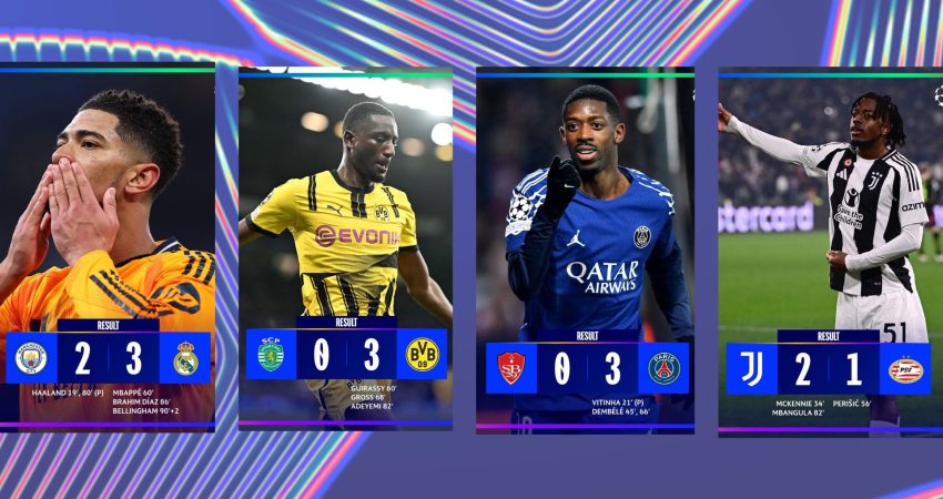 Kampionët në fuqi, finalistët gjermanë dhe pretendentët parizienë mund të quhen të kualifikuar pas fitoreve jashtë fushe në sfidat e para Playoff në UEFA Champions League. Ndërsa Juventus do të duhet të vuajë në Holandë përballë PSV Eindhoven. Fitorja minimale në Torino nuk garanton asgjë për bardhezinjtë. 14 gola në 4 ndeshje me një mesatare më shumë se 3 për ndeshje duket se kanë vendosur shumë për fatin e Sporting dhe Brest që mund të quhen të eleminuara tashmë.