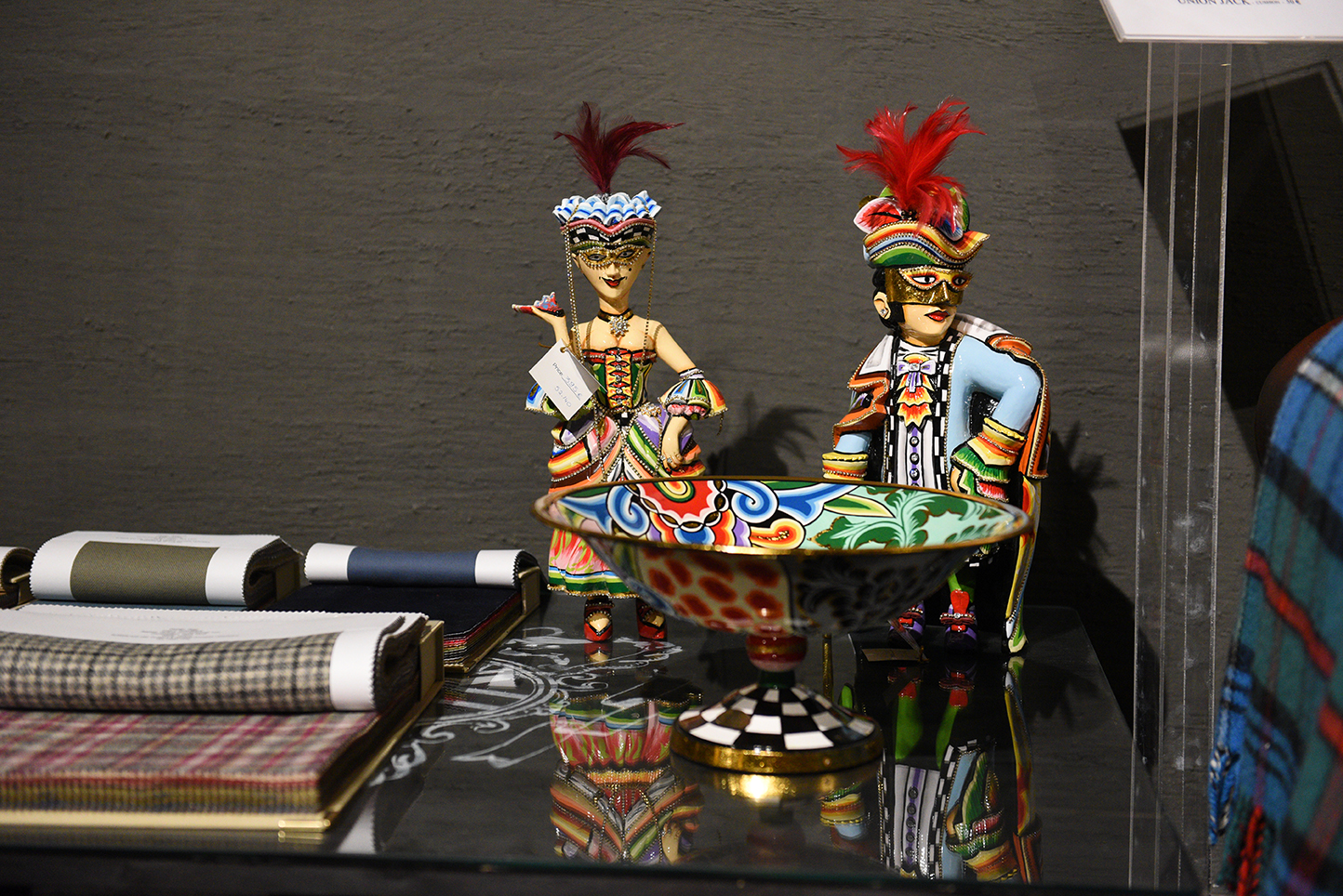 Lëkurëerrët, shpinëshkurtër dhe krahëgjatë, sumbulla metalike të futura thellë në trup për të krijuar linjat elegante dhe klasike, shandanë kristali të mbrojtur me linja metalike të zeza dhe litarë të trashë lini. Mandej për mini librari një paletë druri ngjyrë e çelët, piktura me portretin e Skënderbeut dhe rreth e rrotull orendi artistike dhe arredimi që shkëlqenin në ngjyra të feksura.