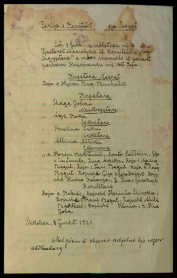 Më 3 gusht 1920 në Shkodër u krijua “Komiteti i Zojavet ‘Grueja Shqyptare’ për ndihma bamirsije”. Synimi kryesor i Komitetit ishte mbledhja e mjeteve financiare dhe e sendeve në mbështetje të ushtrisë shqiptare që ndodhej në front të luftës. Bëhet fjalë, konkretisht, për përpjekjet mes ushtrisë shqiptare dhe ushtrisë së Mbretërisë së Serbisë që u zhvillua në korrik-gusht 1920 në Koplik.