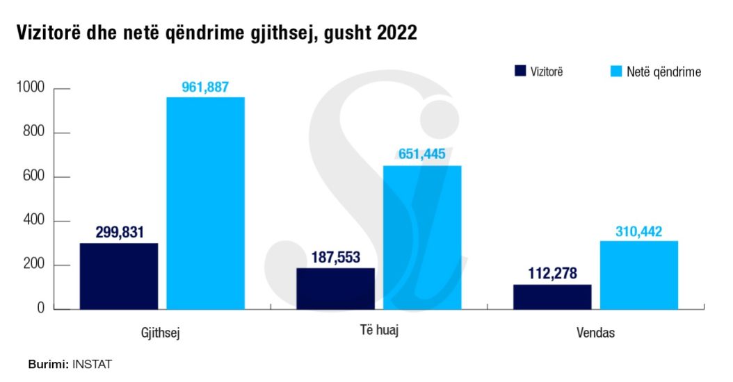 Vitin e shkuar, nëse mesatarja e qershorit dhe korrikut për netë qëndrimet ishte 4 ditë, gjatë gushtit numri i tyre pësoi një rënie me 2.5% duke rënë në 961 nga rreth 986 mijë, që ishin në të njëjtën periudhë të 2021-shit.