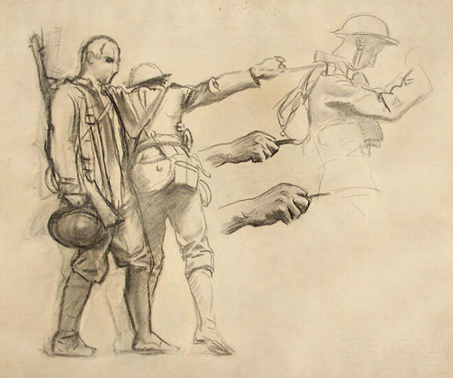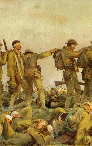 Artisti i shoqëruar nga Henry Tonks, pa ushtarët të udhëhiqeshin në grupe prej rreth gjashtë vetash, me sytë të mbuluar dhe duke vuajtur, ashtu siç i dokumentoi në studimin e tij. Tonks kujtoi më vonë: “Sargent u prek shumë nga skena dhe menjëherë mbajti shumë shënime.”