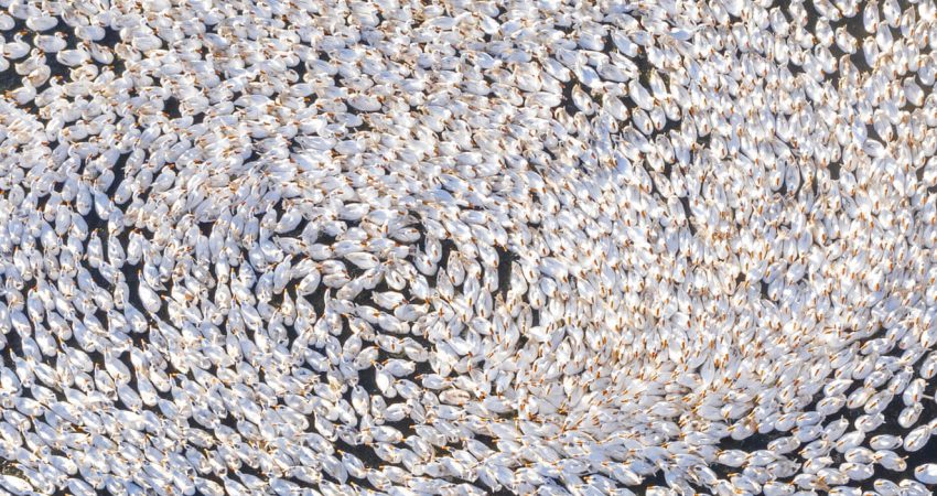 Mbi 6000 pata janë parë teksa notojnë duke formuar një pamje të mrekullueshme në një fermë në provincën Jiangsu, Kinë.