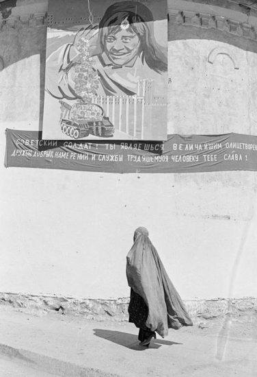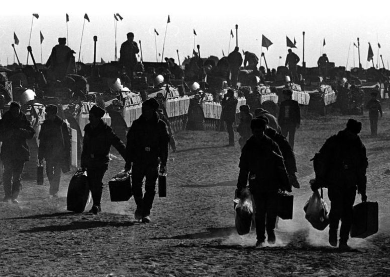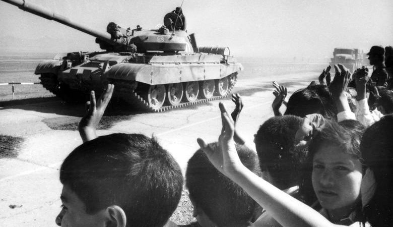Civilët afganë i dhanë lamtumirën trupave sovjetike që po largoheshin në Shindand, Afganistan, tetor 1986. Bashkimi Sovjetik tërhoqi plotësisht forcat e tij nga Afganistani në 1989, pas një dekade lufte./Reuters/