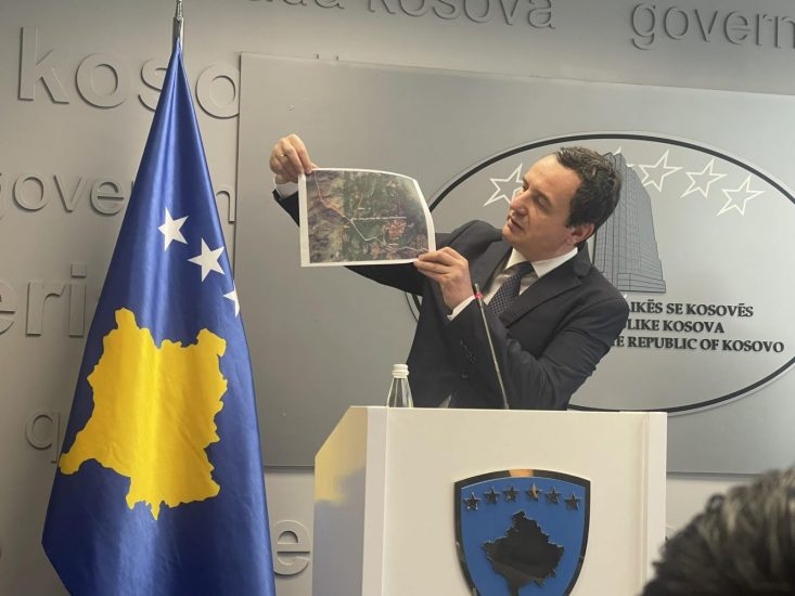 Me një hartë Kurti shpjegoi se tre policët u rrëmbyen në thellësi të territorit të Kosovës dhe se për këtë, KFOR-i i ka parë gjurmët.