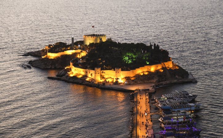 Përveç shumë aktiviteteve në natyrë, Kuşadası me objektet e saj argëtuese është një vendpushim i bukur që i përshtaten të gjitha pritjet. Një nga pikat më të bukura në Kuşadası është Güvercinada ose Pigeon Island, e cila është e bashkangjitur në kontinent nga një rrugë e shtruar dhe është shtëpia e një fortese, e ndërtuar në periudhën bizantine.