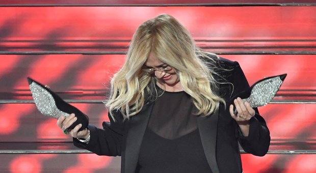 Duke autoironizuar moshën e saj, 69 vjeç, ajo zbathi këpucët me taka dhe i zbriti shkallët e Sanremos me furi.