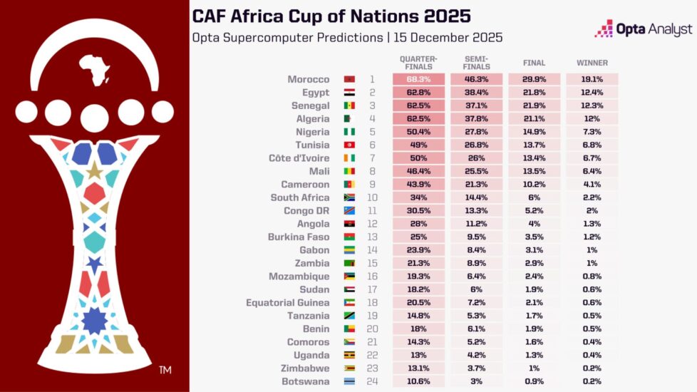 Përpara ndeshjes hapëse të turneut mes Marokut dhe Komoros, ja si e parashikon “AFCON 2025”, superkompjuteri i Opta-s: