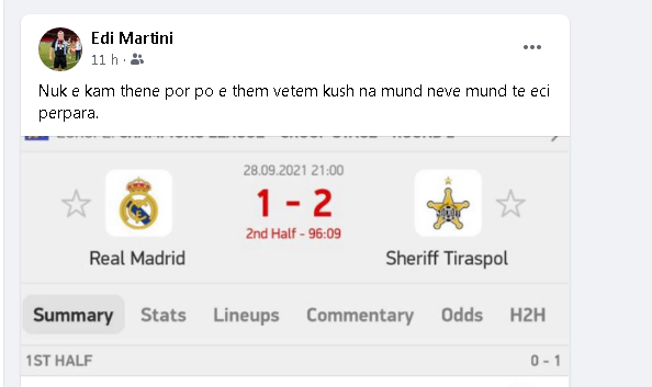 “Nuk e kam thënë, por po e them. Kush na mund ne, ecën përpara”, – shkruante me humor trajneri Martini në faqen e tij në Facebook pas fitores së Sherfit ndaj Realit.
