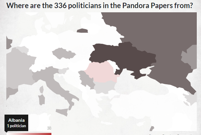 Konsorciumi i gazetarëve investigativë ndërkombëtarë ka publikuar hartën me vendet e përfshira në “Pandora Papers” dhe në dosjet e rrjedhura është të paktën një politikan shqiptar.