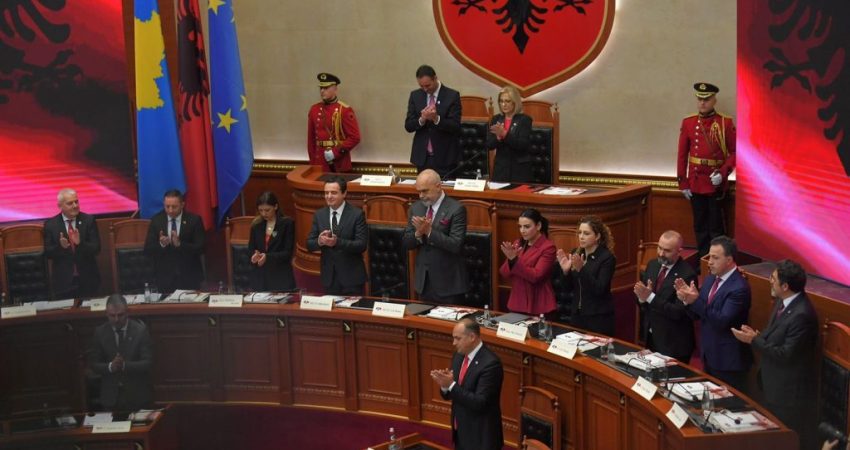 “Në datën 20 dhjetor, ora 11:00, në Prishtinë, në sallën e seancave plenare të Kuvendit të Kosovës, do të zhvillohet mbledhja e përbashkët e Kuvendit të Shqipërisë dhe e Kuvendit të Kosovës. Në vijim, gjatë ditës së sotme, do t’ju informojmë për axhendën dhe detajet”, njoftoi Kuvendi i Shqipërisë.
