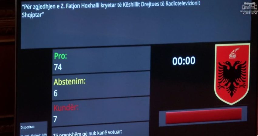 Nga Gazeta ‘Si’- Fatjon Hoxhalli është zgjedhur kryetar i Këshillit Drejtues të RTSH-së me 74 vota pro, 7 kundër dhe 6 abstenim.
