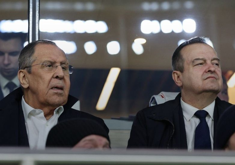 Ministri jashtëm rus Sergej Lavrov dhe ai serb Ivica Daçiç ishin të pranishëm në tribunën VIP të stadiumit të Dinamos së Moskës, ku u zhvillua ndeshja miqësore mes Rusisë dhe Serbisë, që përfundoi me shifrat 4-0 në favor të vendësve.