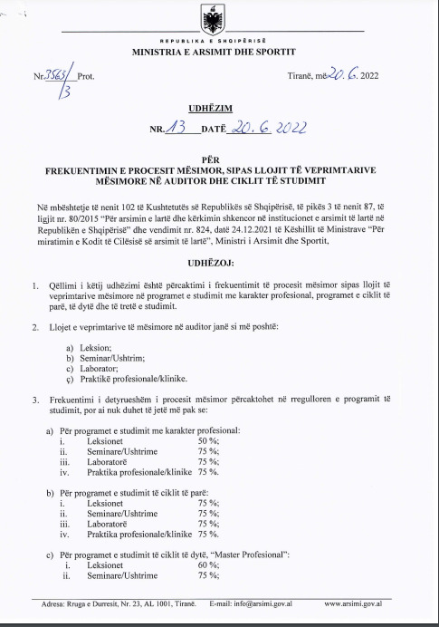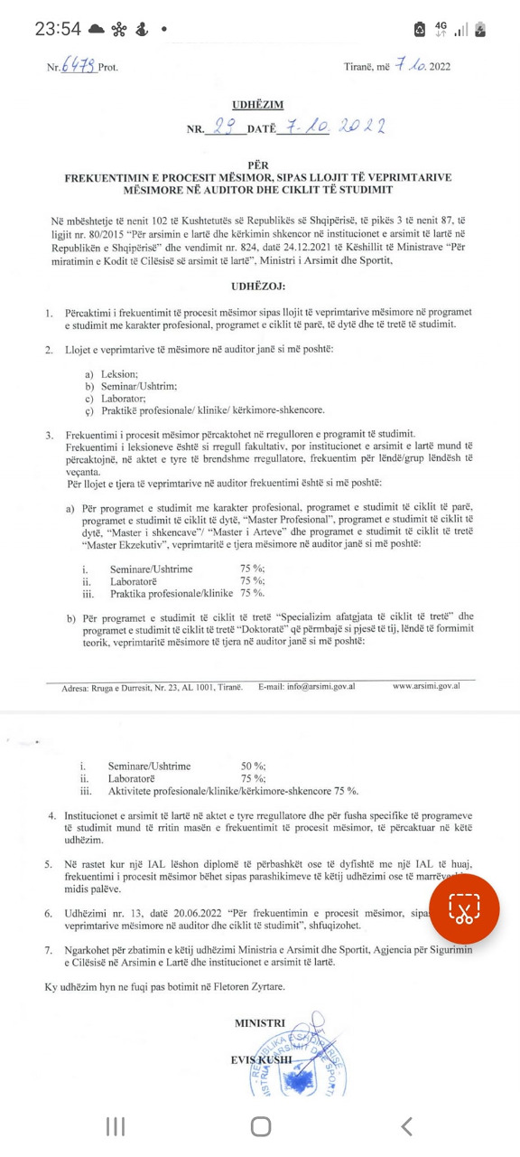 Nisur nga kjo situatë, ku duket se presioni i universiteteve publike ndaj MAS këto ditë ka qenë jo pak i vogël, ministria e Arsimit ka firmosur në datën 7 tetor një tjetër udhëzim ku thotë shprehimisht se ndjekja e leksioneve është fakultative, pra janë fakultetet ato që përcaktojnë sipas akteve të brendshme rregullatore për frekuentim të lëndëve/grup lëndësh të veçanta.