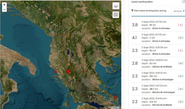 Gazeta Si – Një lëkundje sizmike është ndjerë mëngjesin e kësaj të shtune në juglindje të vendit. Mësohet se tërmeti ka qenë me magnitudë 4.1 ballë e shkallës Rihter.