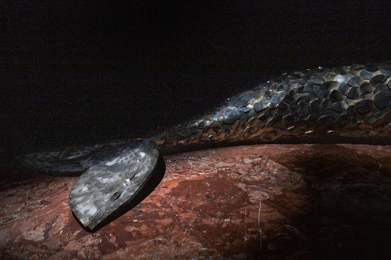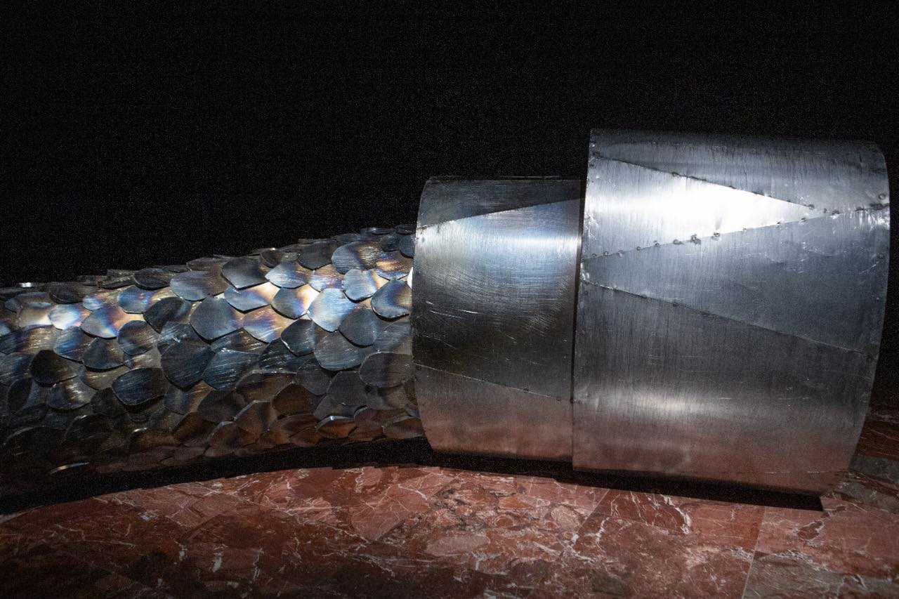 Errësira që shoqëron ekspozitën shton akoma më shumë misterin e simbologjisë së kësaj trinie. Leviatani duket sikur kërkon të pushtojë të gjithë hapsirën, duke lënë pak vend për lëvizje dhe duket sikur e bën vizitorin të ndihet i vogël përballë kësaj skulpture kaq të pranishme.