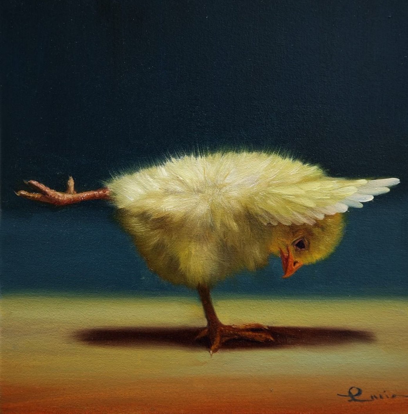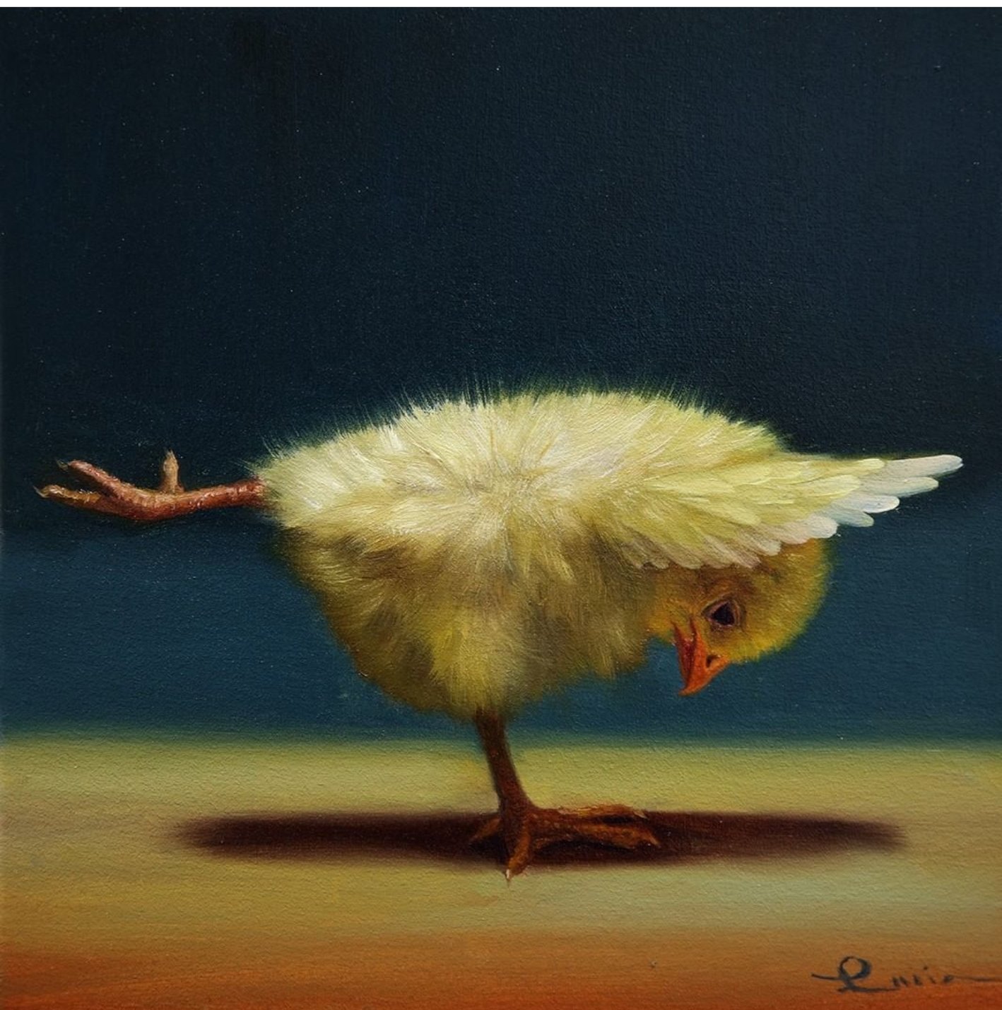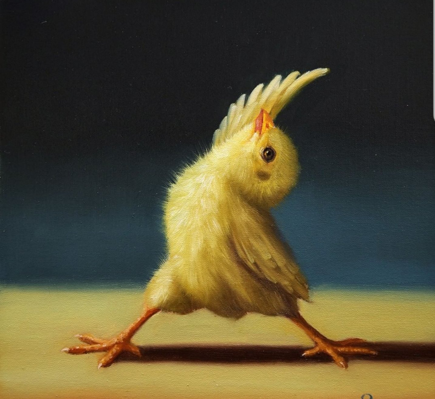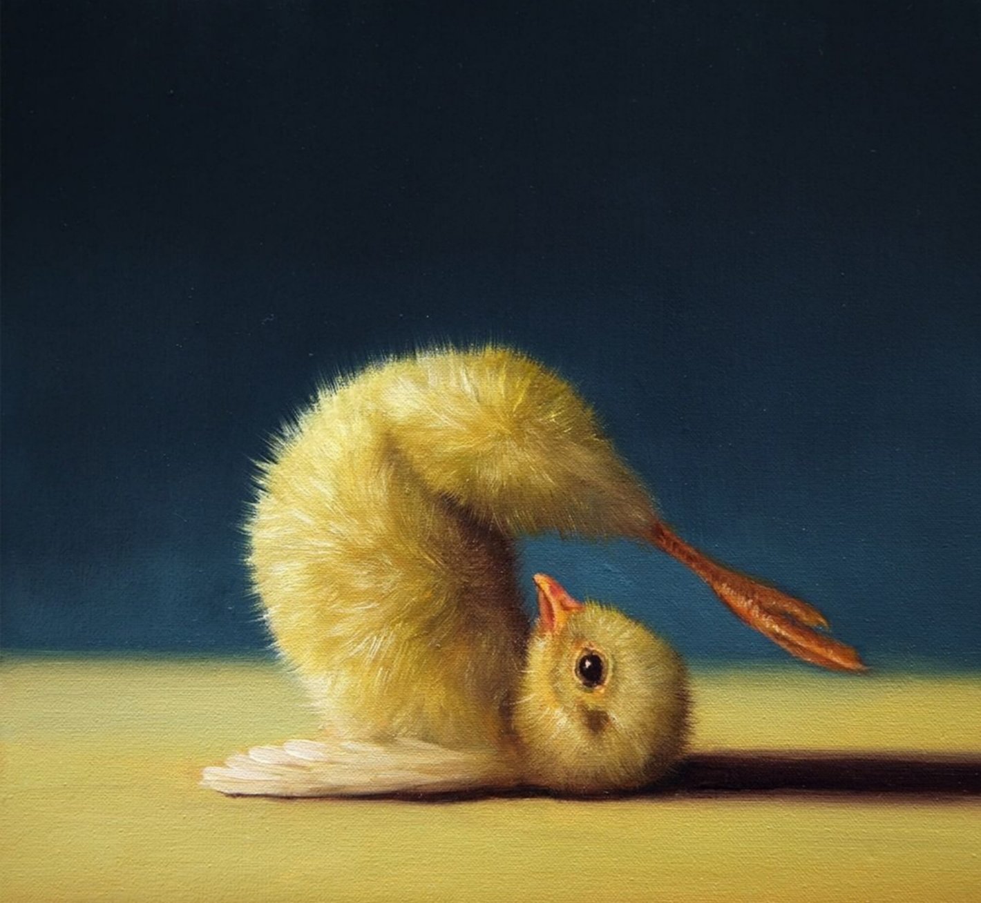 Një zog me gëzof të verdhë. Fotografia-piktoria Lucia Heferman, ka vendosur të tregojë një qasje tjetër për mënyrë se si i shohim shpendët, madje edhe duke bërë yoga.