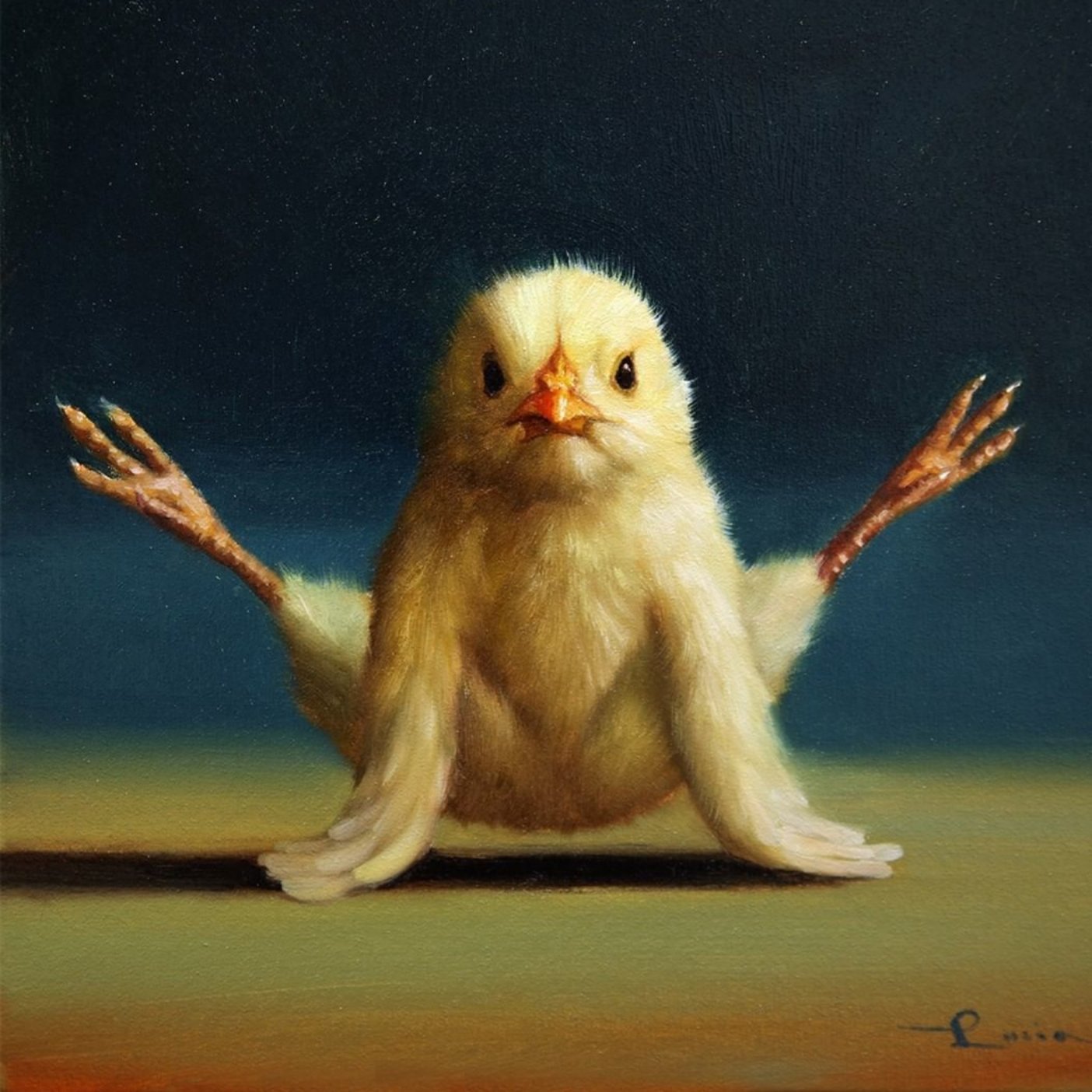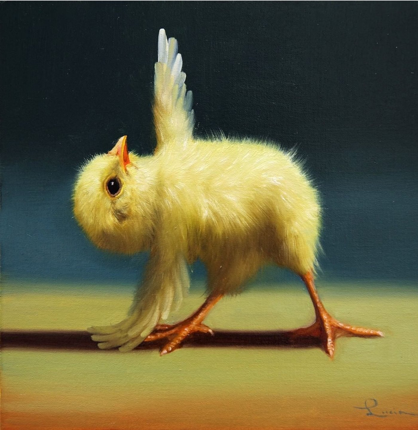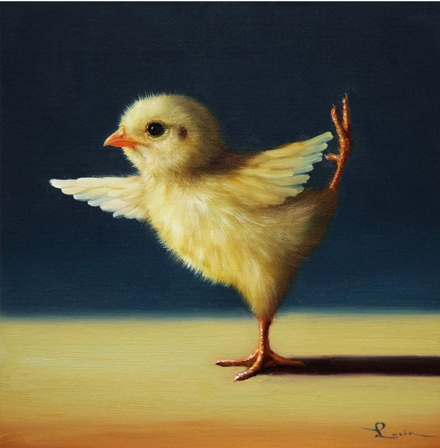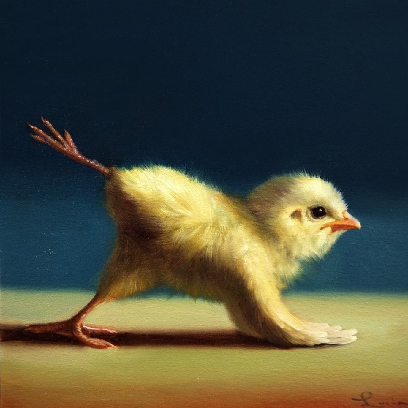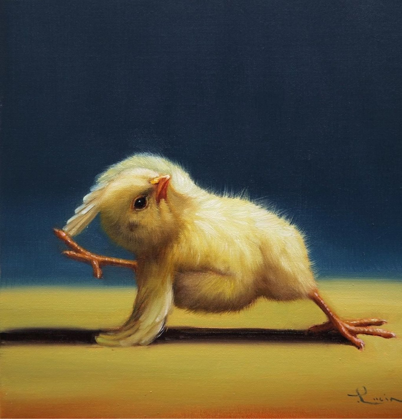 Një zog me gëzof të verdhë. Fotografia-piktoria Lucia Heferman, ka vendosur të tregojë një qasje tjetër për mënyrë se si i shohim shpendët, madje edhe duke bërë yoga.