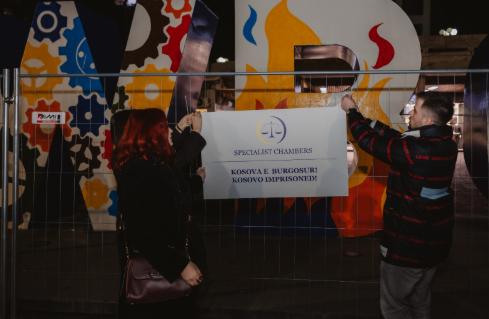 NEWBORN-i, simboli i 17 shkurtit dhe i lindjes së Republikës së Kosovës është mbuluar me emblemat për të pasqyruar ndjenjën e padrejtësisë që qytetarët dhe Kosova po e përjetojnë përballë proceseve gjyqësore që po zhvillohen në Dhomat e Specializuara të Kosovës në Hagë.