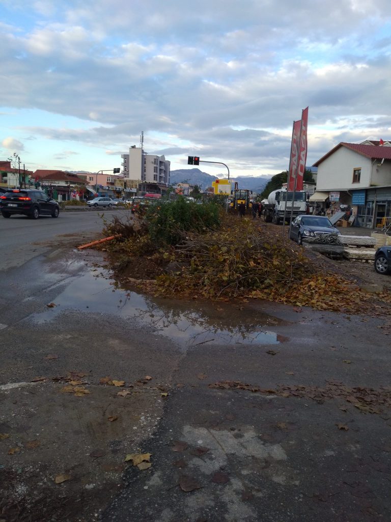 Punonjësit e këtyre institucioneve janë përpjekur ditët e fundit që të heqin nga rruga pemët, ndriçimin dhe tubacionet e kanalizimeve. Deri më tani punimet kanë ecur nga krahu i Sheshit Shqiponja dhe në anën tjetër tek mbikalimi pranë Pallatit me Shigjeta.