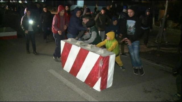 Banoret duke rrëzuar blloqet e betonit