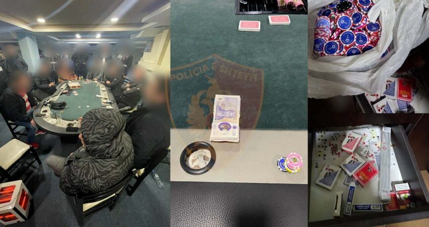 Policia ka sekuestruar një tavolinë pokeri, një valixhe me çipsa, letra që shërbenin për lojërat e fatit, një sasi parash, 26 aparate celularë, 10 automjete dhe një sasi lënde e dyshuar narkotike kanabis sativa.