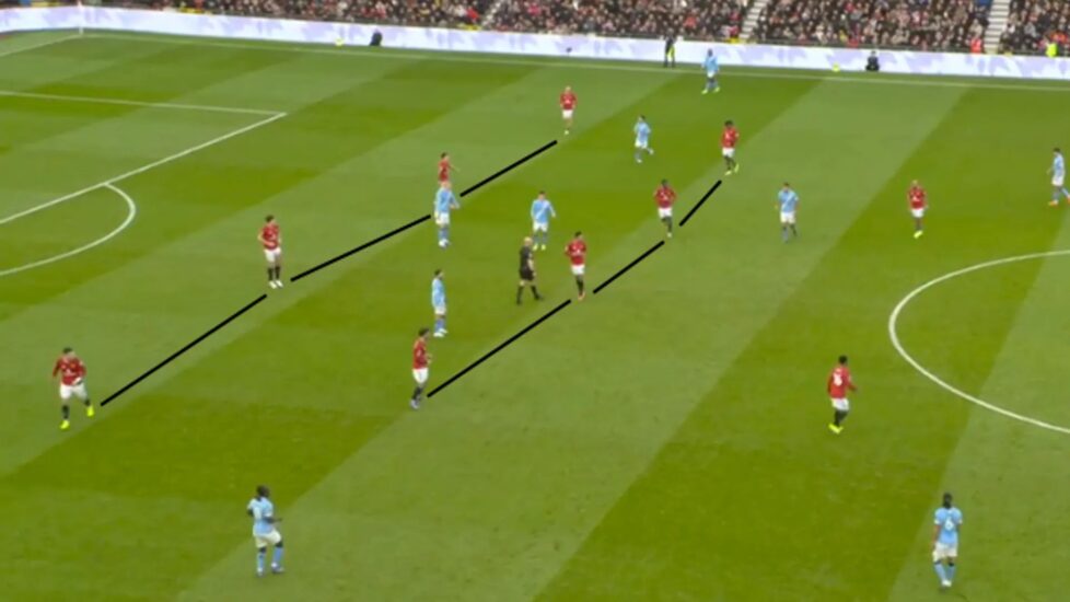 Befasues në derbin e Mançesterit ishte Casemiro, i cili duket si një lojtar krejtësisht tjetër falë përdorimit nga Carrick të një blloku të mesëm 4-4-2 kur skuadra është pa top.