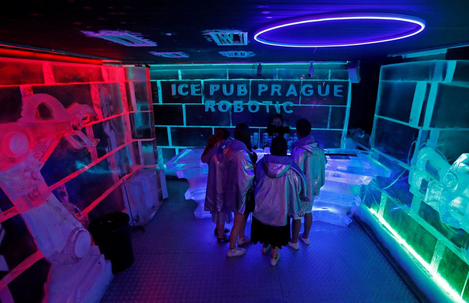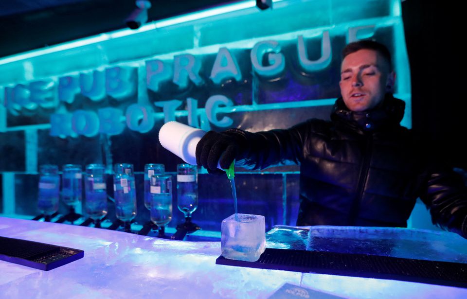 Lokali, vetëm një minutë në këmbë nga Ura e njohur e kryeqytetit Charles, shërben kokteje me bazë vodka në gota të bëra me akull ku dhe orenditë e dekorimet janë bërë gjithashtu nga akulli.