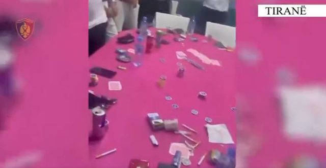Në cilësinë e provës materiale u sekuestruan 1 tavolinë pokeri dhe çipsa, 18 aparate celulare, shuma të ndryshme parash, si dhe sasi lënde e dyshuar narkotike kokainë.