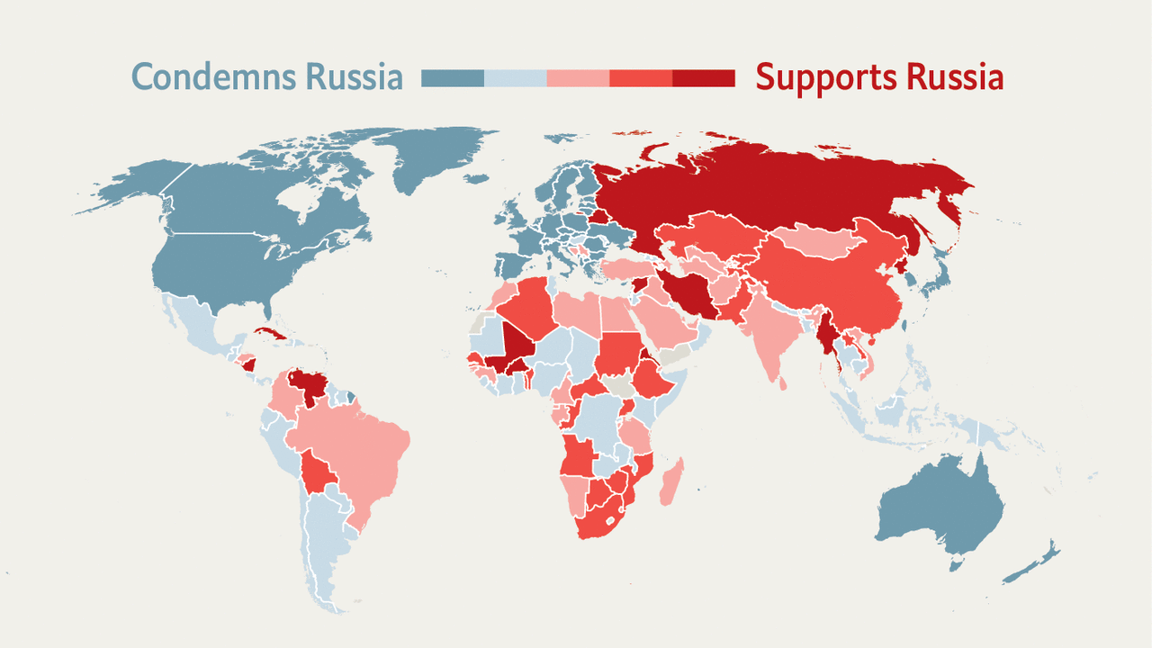 Sipas “The Economist”, zhvendosja më e madhe mund të gjurmohet kryesisht në vendet që adoptuan një qëndrim neutral një vit më parë dhe tani janë më pro-ruse pa u përfshirë në mënyrë të qartë.