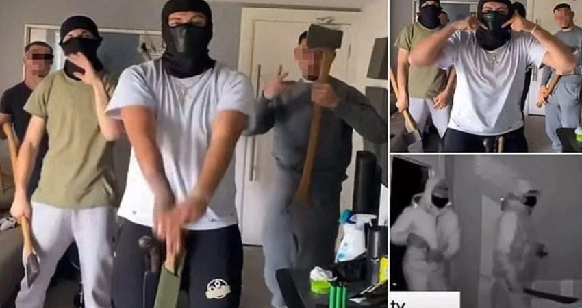 Në një tjetër video siguruar nga “Daily Mail”, shihen pesë djem të ri shqiptarë që mbajnë në duar thika, hanxharë dhe sëpata duke thënë se po bëhen gati për grabitje.