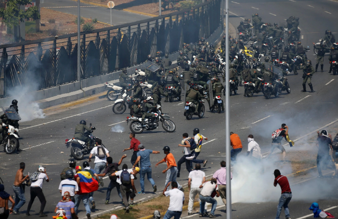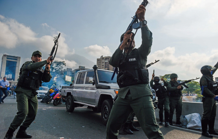 Protestuesit u përgjigjën duke hedhur gurë, por u qëlluan disa herë me gaz lotsjellës. Guaidó, kryetari i Asamblesë Kombëtare të kontrolluar nga opozita, i ka bërë thirrje ushtrisë së Venezuelës që ta mbështesë që kur u vetë-shpall president i përkohshëm në janar. Ai argumenton se Presidenti Maduro ka “uzurpuar” pushtetin dhe ka manipuluar zgjedhjet.