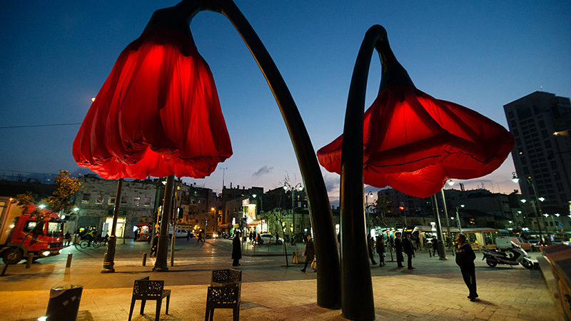Vendosur në sheshin Vallero në zemër të Jeruzalemit, lulet janë instaluar si pjesë e përpjekjeve të komunës për të përmirësuar hapësirën urbane.