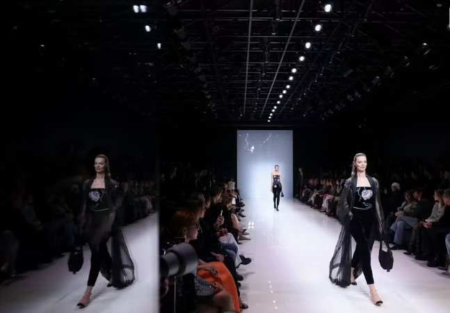 Armani, i njohur si Mbreti Giorgio në Itali, hapi shfaqjen për vjeshtë/dimër 2024, të quajtur “Lulet e dimrit”, me pamje në gri të hapur dhe kafe, xhaketa dhe pantallona, të plotësuara me shalle ose rripa blu me lule.