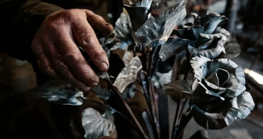 Një farkëtar në qytetin e Donjeckut të pushtuar nga Rusia po i shndërron mbetjet e armëve dhe municioneve në kujtime.