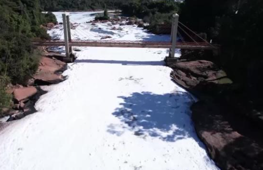 Lumi Tiete në Brazil është mbuluar me një shtresë të trashë shkume me erë të keqe për shkak të ndotjes. Shtresa vjen nga rrjedhjet e detergjentëve dhe mbetjet kimike që hidhen në lumë.