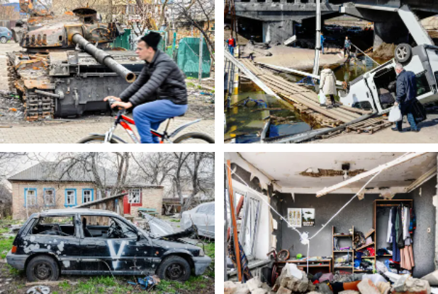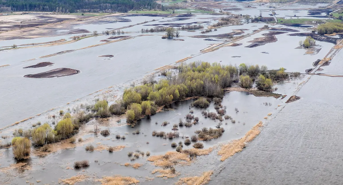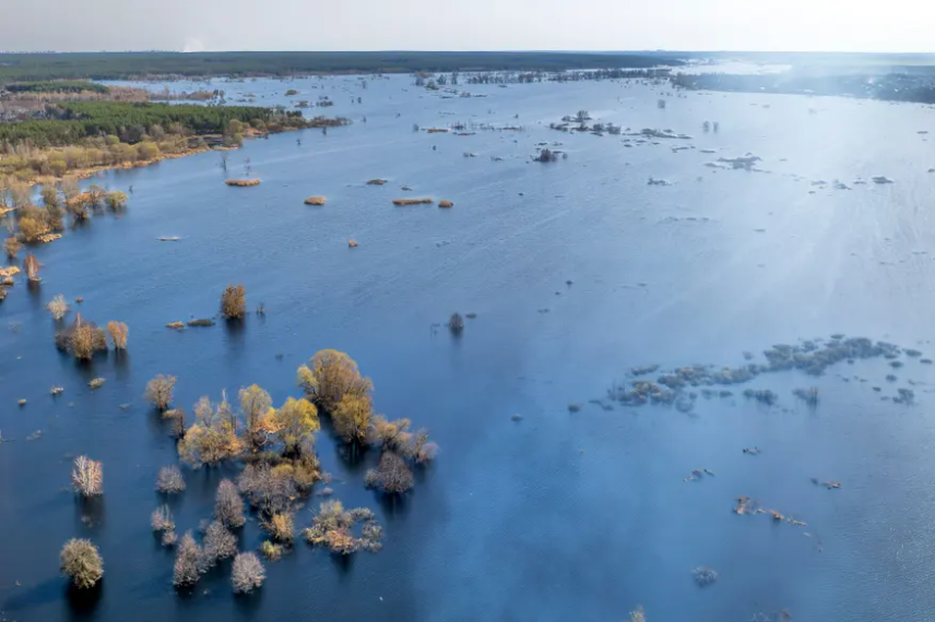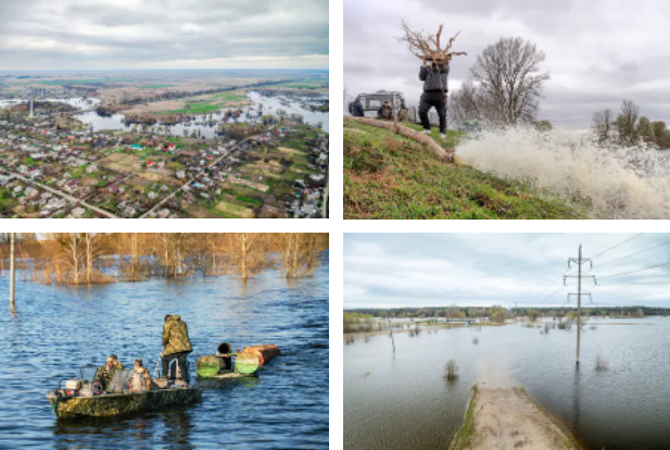 Thyerja e digës së Irpin-it në fund të shkurtit mbajti ushtarët dhe tanket ruse dhe përmbyti 13,000 hektarë (32,000 hektarë) ligatina që u thanë nga sovjetikët në vitet 1960.