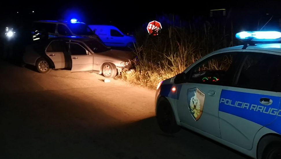 Duke drejtuar mjetin tip “Benz” me targa AA 723 EU dhe të ndjekur nga policia, të rinjtë janë përplasur me barrierat e hekurta duke hyrë në rrugën rurale në Kashtbardhë.
