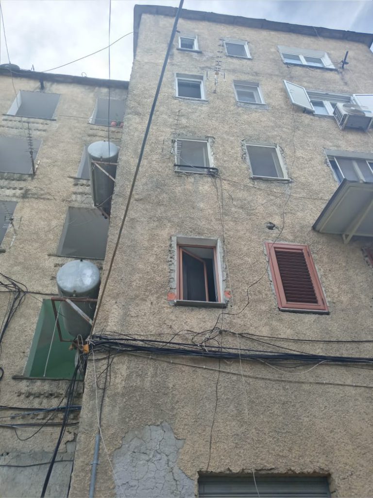 Pallati ky ata jetojnë, i cili mbart nurmin 163, është ndër më të dëmtuarit në këtë zonë, aq sa banorët kanë frikë edhe të hyjnë për nevojat personale. Pothuajse të gjitha dhomat kanë pësuar shembje të suvasë dhe çarje të rënda në mure. Banorët qëndrojnë prej tre ditësh në ankth mes të ftohtit, duke u endur sa andej këtej nëpër oborrin e vogël.