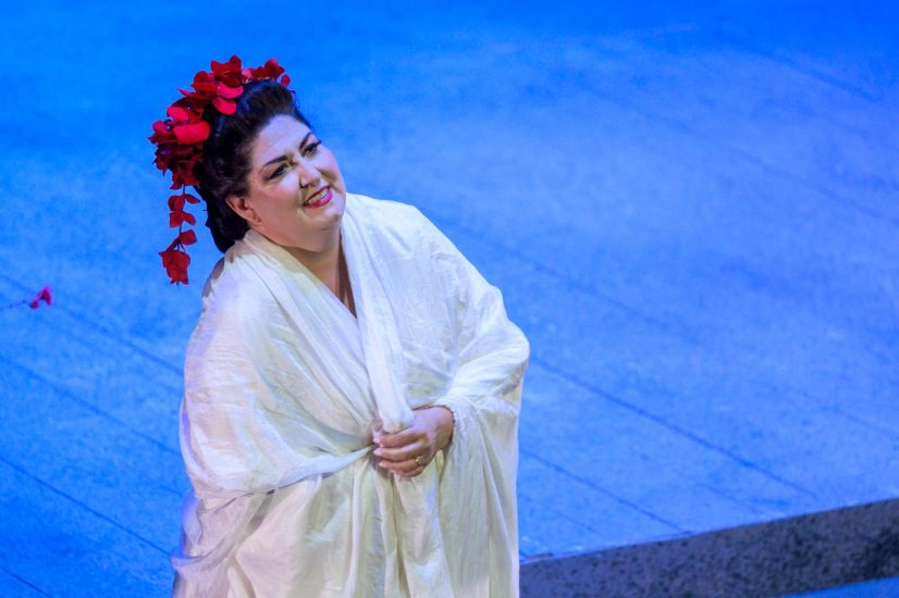 Natën e premierës, e ftuara e nderit e këtij produksioni, sopranoja e mirënjohur Anna Pirozzi, interpretoi rolin e Cio Cio San-it. Përveç Anna Pirozzi-t, natën e parë në skenë u ngjitën Klodjan Kaçani në rolin e Pinkertonit, Ivana Hoxha si Suzuki, Armando Likaj si Sharpless, Simona Karafili si Kate Pinkerton etj.