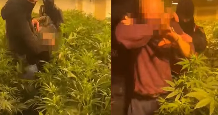Sipas policisë, gjatë kontrollit në një objekt trekatësh, në katin e dytë u konstatua një dhomë e përshtatur për kultivimin dhe tharjen e bimëve narkotike, me llamba dhe pajisje që furnizoheshin me energji elektrike në mënyrë të paligjshme.