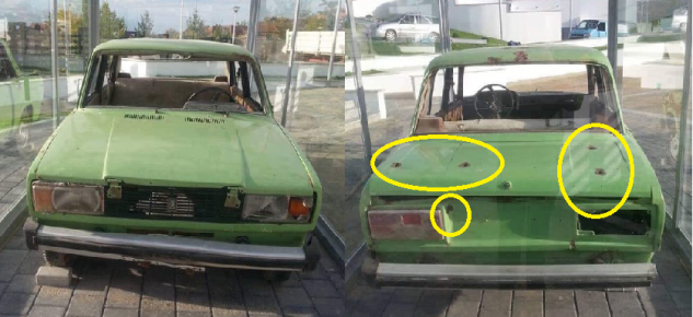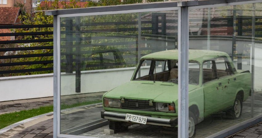 Fotografia e parë është një makinë Lada e mbyllur në një “kuti” xhami si një memorial i heronjve të Ushtrisë Çlirimtare të Kosovës. Me atë makinë udhëtonin Zahir Pajaziti, Edmond Hoxha dhe Hakif Zejnullahu kur iu zu pritë dhe u vranë.