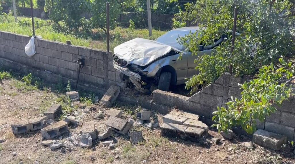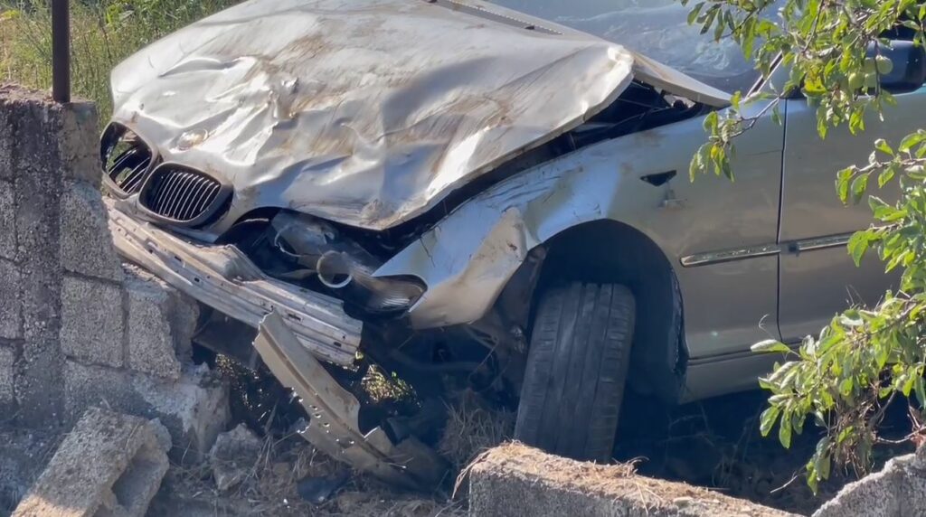 Një automjet tip “BMW” nga shpejtësia tej normave të lejuara ka kryer një manovër të gabuar dhe ka humbur kontrollin, çka ka sjellë  përplasjen e mjetit fillimisht me barrierat mbrojtëse të rrugës më pas duke përplasur një pjesë betoni muri rrethues të një servisi.