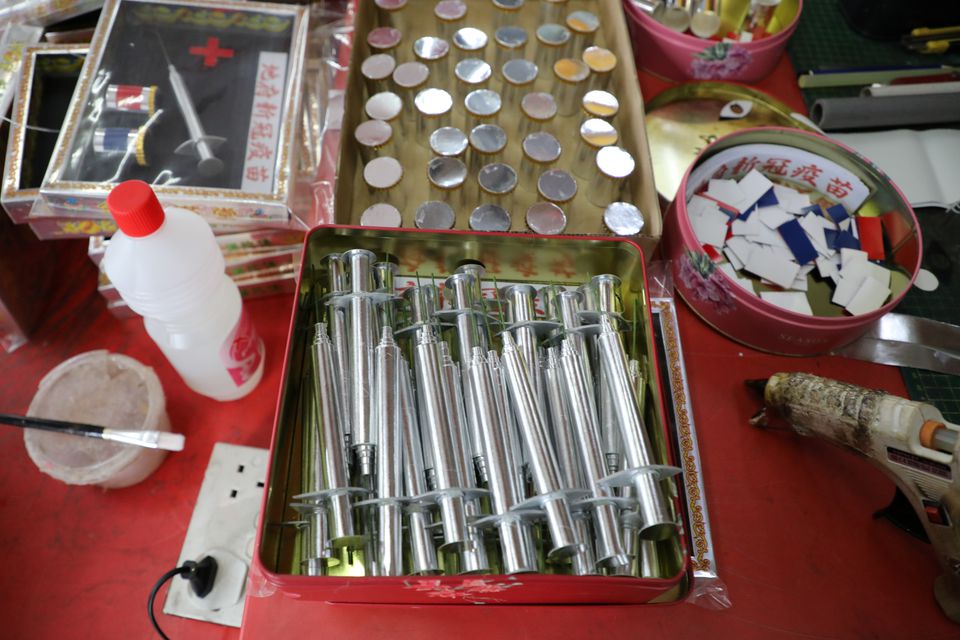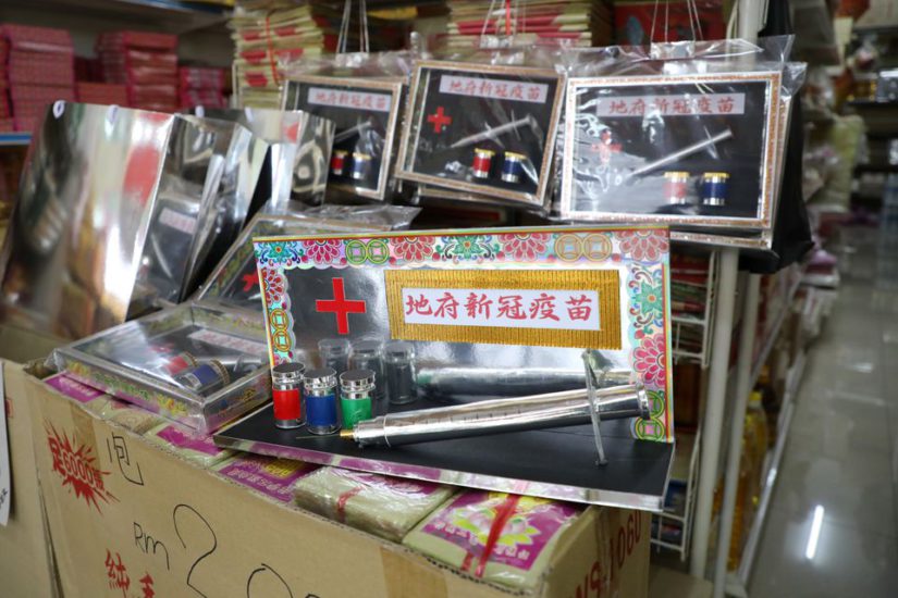 Këtë vit, një kuti e shiringës dhe dy shishe vaksine të bëra prej letre janë ndër artikujt më të shitur për festivalin në dyqanin e mallrave fetare të Raymond Shieh Sioë Leong në qytetin jugor Malajzian të Johor Bahru.