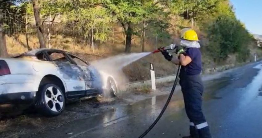 Menjëherë, në vendin e ngjarjes kanë mbërritur forcat zjarrfikëse, duke shuar flakë në automjet.