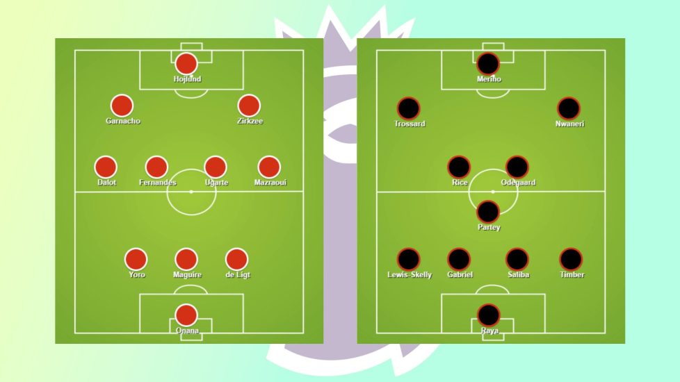 Maguire dhe Ugarte nuk udhëtuan në San Sebastian por Ruben Amorim shpreson ti ketë gati për nesër. Mainoo pritet të kthehet pas këtij muaji ndërsa Diallo dhe Martinez e kanë mbyllur sezonin bashkë me Shaw, Mount dhe Evans. Mungesat në prapavijë mund ti krijojnë hapësirë Heaven i larguar edhe ky nga Arsenal-i, ndërsa Dorgu është i pezulluar pas kartonit të kuq që mori ndaj Ipswich. Kjo do të jetë ndeshja e 200 për Arteta-n që bëhet traineri i 14 që e arrin këtë me një skuadër dhe i 39 në total. United nga ana tjetër nuk ka fituar asnjëherë dy ndeshje rradhazi këtë sezon dhe nëse dëshiron të mos jetë në pjesën e dytë të klasifikimit, ka nevojë për fitoren e të dielës.