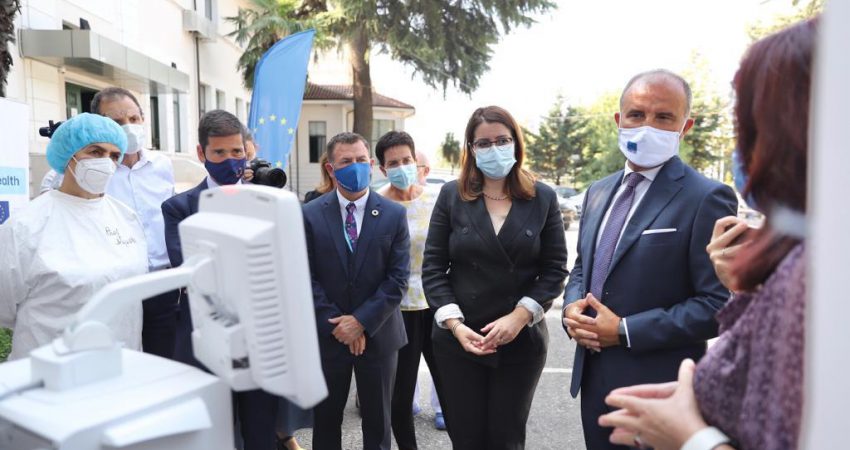 Ministrja e Shëndetësisë dhe Mbrojtjes Social Ogerta Manastirliu dhe Ambasadori i Bashkimit Europian në Shqipëri Luigi Soreca morën pjesë në ceremoninë e dorëzimit të paketës së pestë të mbështetjes së Bashkimit Europian për Shqipërinë.